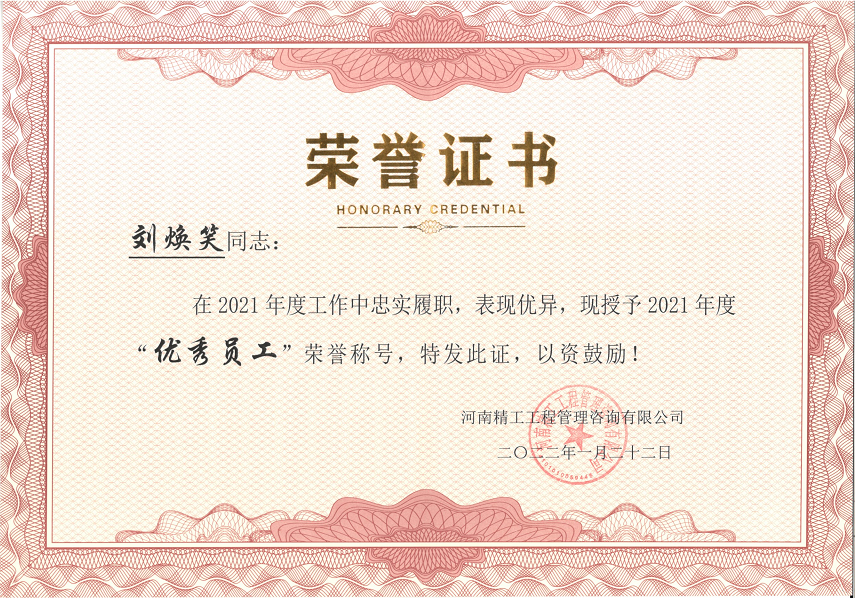 提到劉煥笑,在剛踏入社會的新同事眼中她是溫柔可親的鄰家姐姐,生活中有困難需要幫助第一時間想到的人就是她,在多次實(shí)地走訪項(xiàng)目,進(jìn)行思想調(diào)研中,了解到新員工遇到的難題都會及時進(jìn)行幫助和反饋。而在周圍同事眼中的她則是熱衷學(xué)習(xí)和互助的達(dá)人,在專監(jiān)報(bào)名時積極主動,做好表率,并成功取得證書,在一眾男兒中靠實(shí)力證明女子的能力。